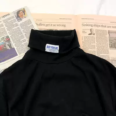 19studio Korean ulzzang solid color cotton high collar long sleeve ins Harajuku wild T-shirt base shirt men and women