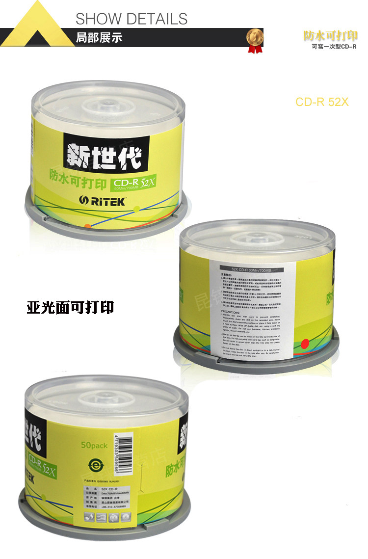 Ryder new generation CD-R 52X waterproof printable blank burning disc Burning disc DISC Ryder New era