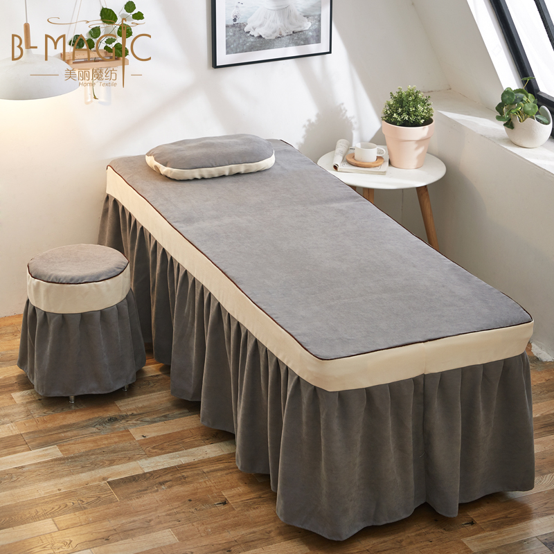 Beauty Magic Spinning Beauty Salon Bedspread Four-piece Set Cotton And Linen Massage Treatment Massage Bedspread Simple European Style Logo Customization