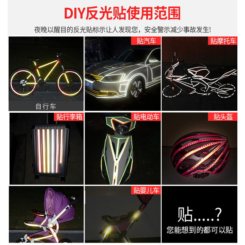 Bike Reflective Patches Children Balance Car Reflective Strips Mountaineering Caravan Luminal Car Stickers Electric Car Body Stickers Accessories
