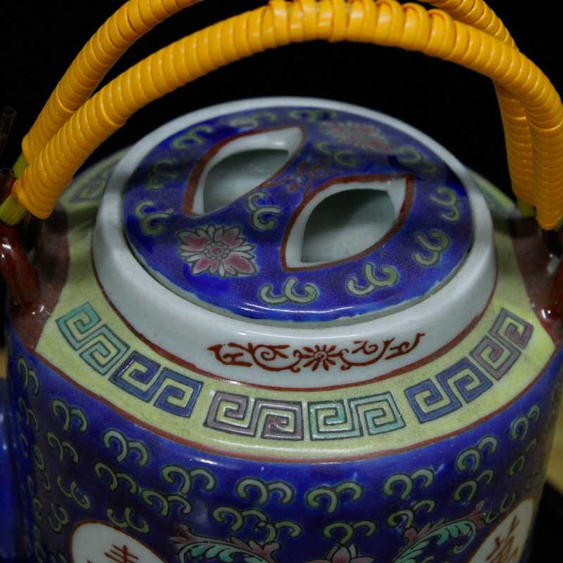 Jingdezhen factory goods Cultural Revolution porcelain old goods Ti-liang pot Wanshou no Xinjiang Kettle Teapot Blue Classic