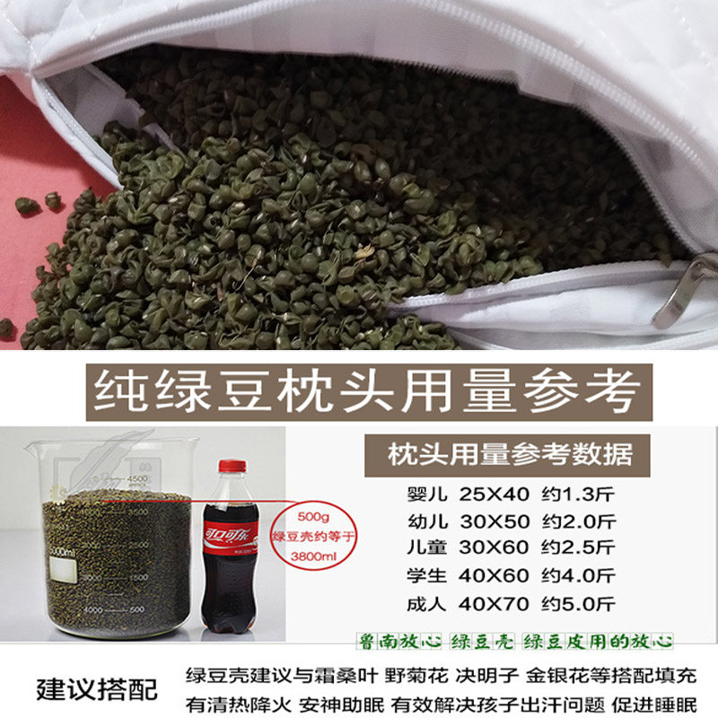 Perfuncched green bean shell pillow pillow core flower and grass Chinese medicine pillow gallbladder single child elderly adult student health care medicine pillow
