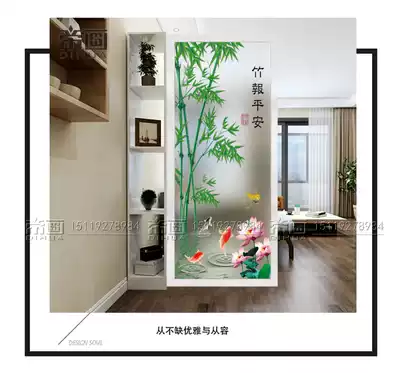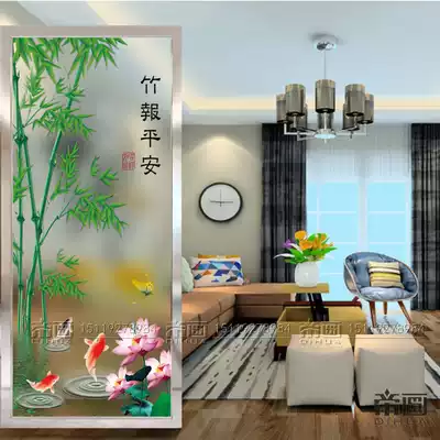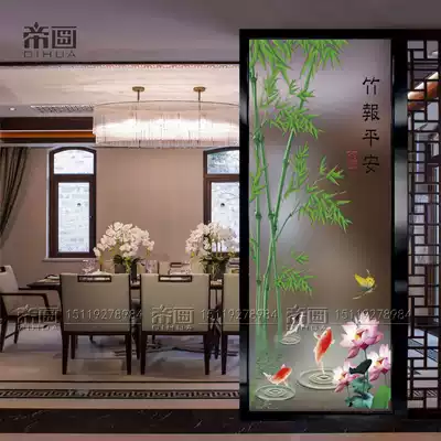 Custom art tempered glass frosted light transparent double-sided screen partition living room entrance shoe cabinet decoration bamboo newspaper peace