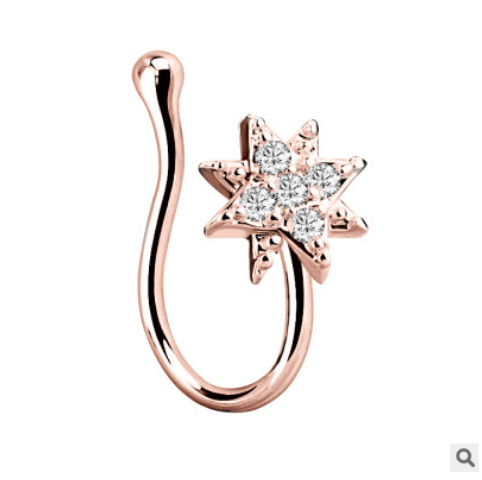 No hole nose ring False nose nail No hole nose ornament Ear bone clip Sterling silver diamond-set women's pure silver puncture jewelry False nose clip