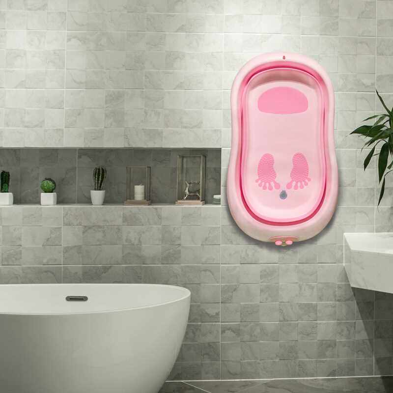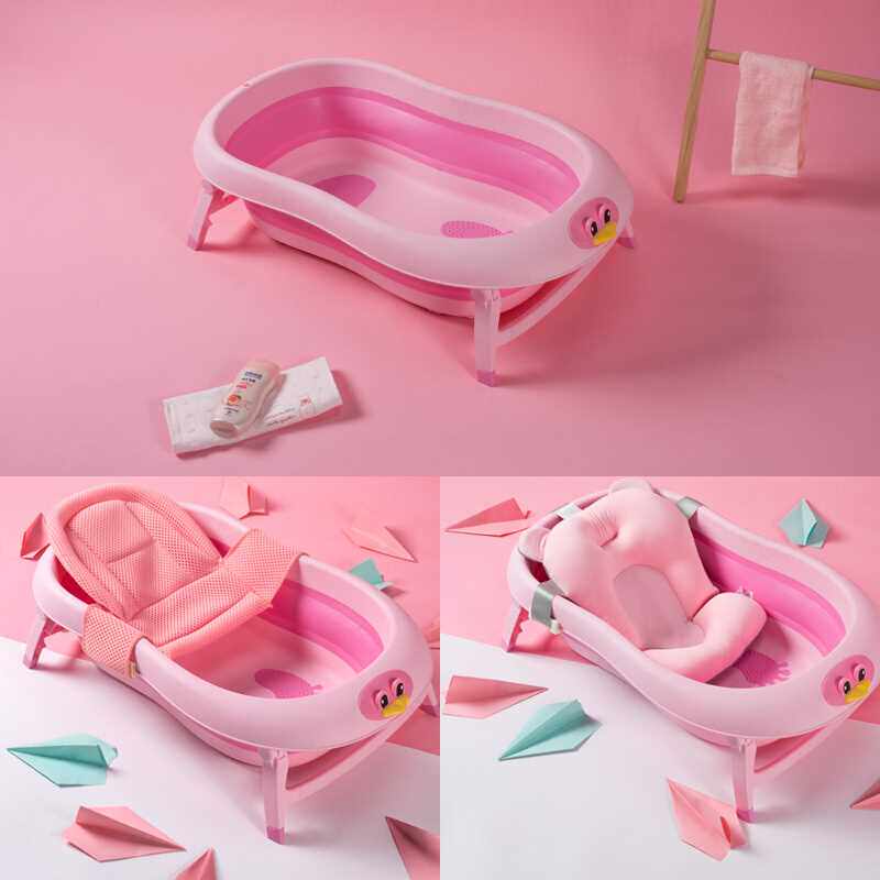 Beow Meow Baby Baby Newborn Baby Bath Tub Bucket Foldable can sit down big pink tub-Taobao