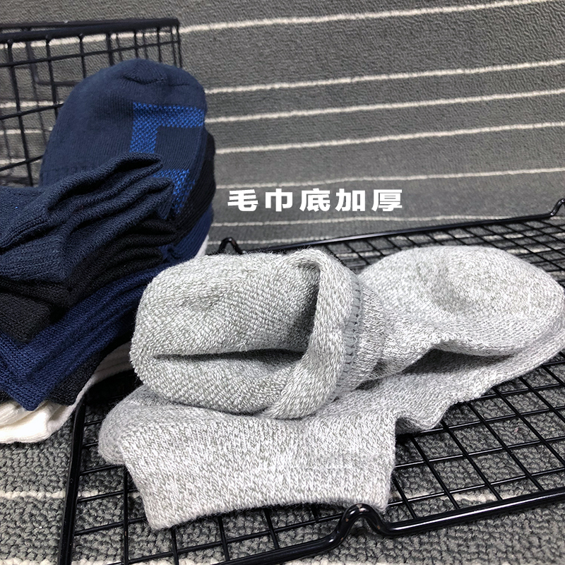 Thickened shallow towel bottom sports pure cotton running socks men's low-help sweat-absorbing fitness running black socks trend