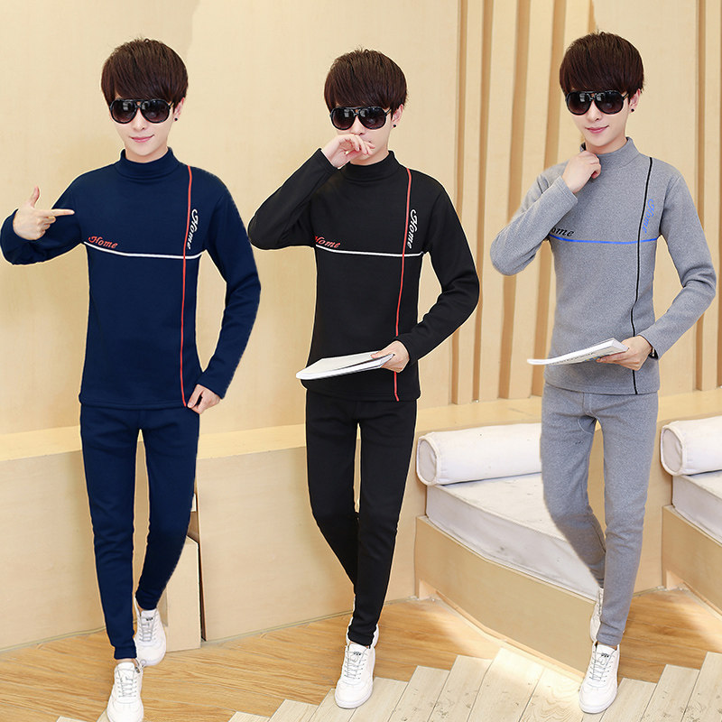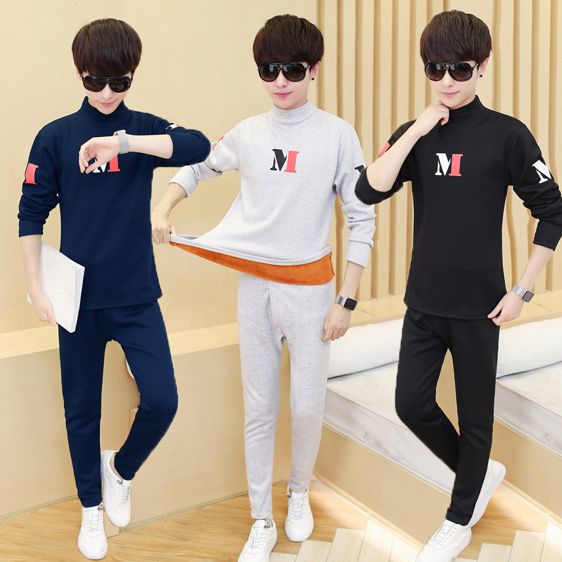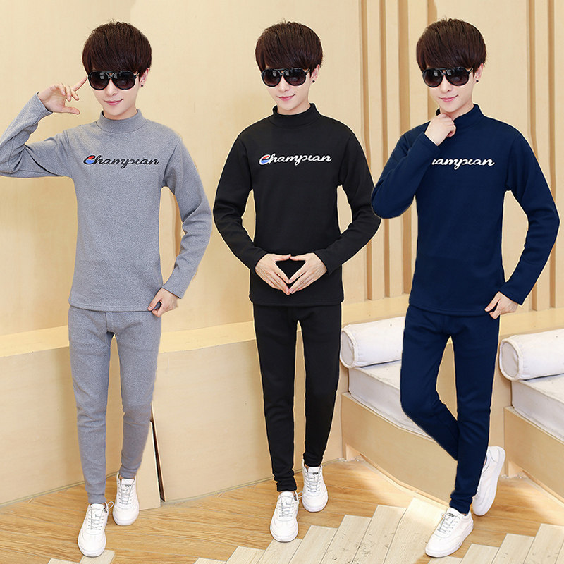 A set of teenage heating underwear men's plus velvet thickening junior high school students' half turtleneck autumn clothes and middle collar bottoming shirts