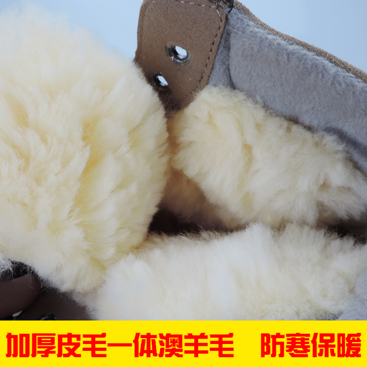Winter genuine leather wool cotton boot thickened with velvety fur integrated snow boots male non-slip warm cotton boots Head cotton shoes