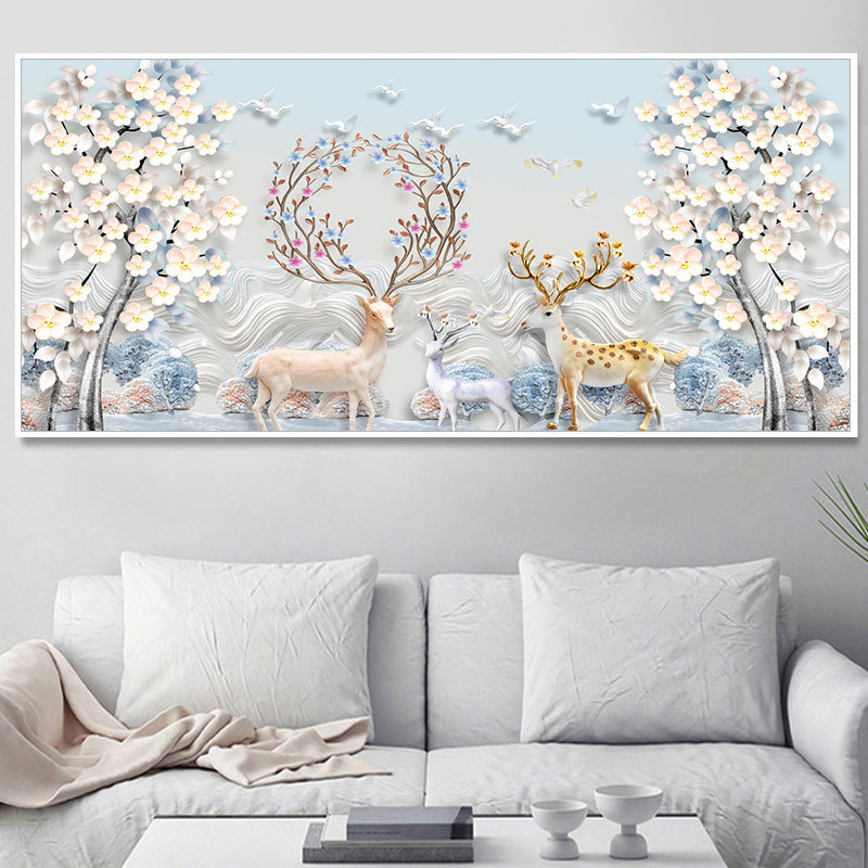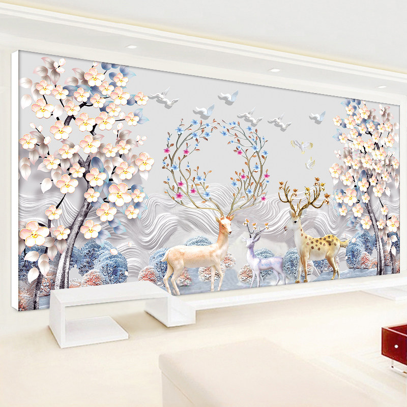 Mona Lisa Cross embroidered 2021 new line embroidered living room with great financial elk Luostyle scenery herself embroidered