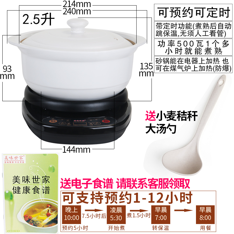 8L Large Capacity Fully Automatic Fast Electric Saucepan Timed Reservation Saucepan Soup Cooking Porridge Boiling Congee Ceramic Purple Casserole Electric Sand Pot