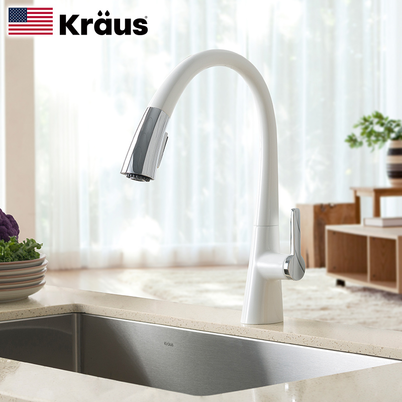 USA kraus Kitchen Pull-out sink faucet Household stretch Anti-fingerprint White Hot and cold splash-proof 1673