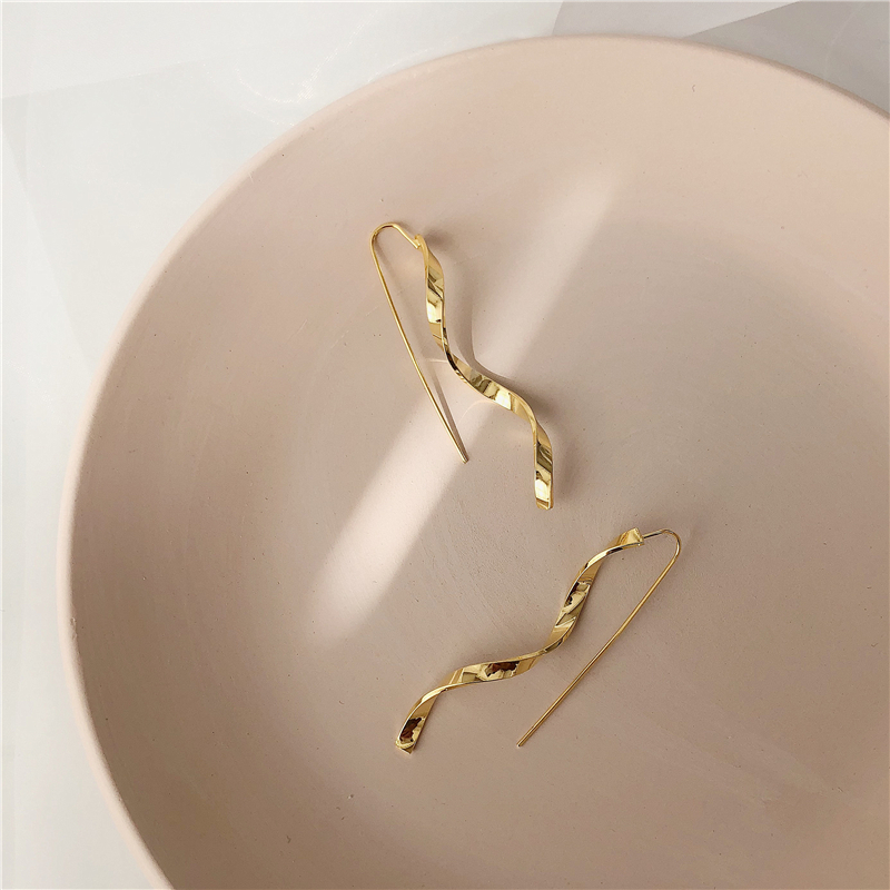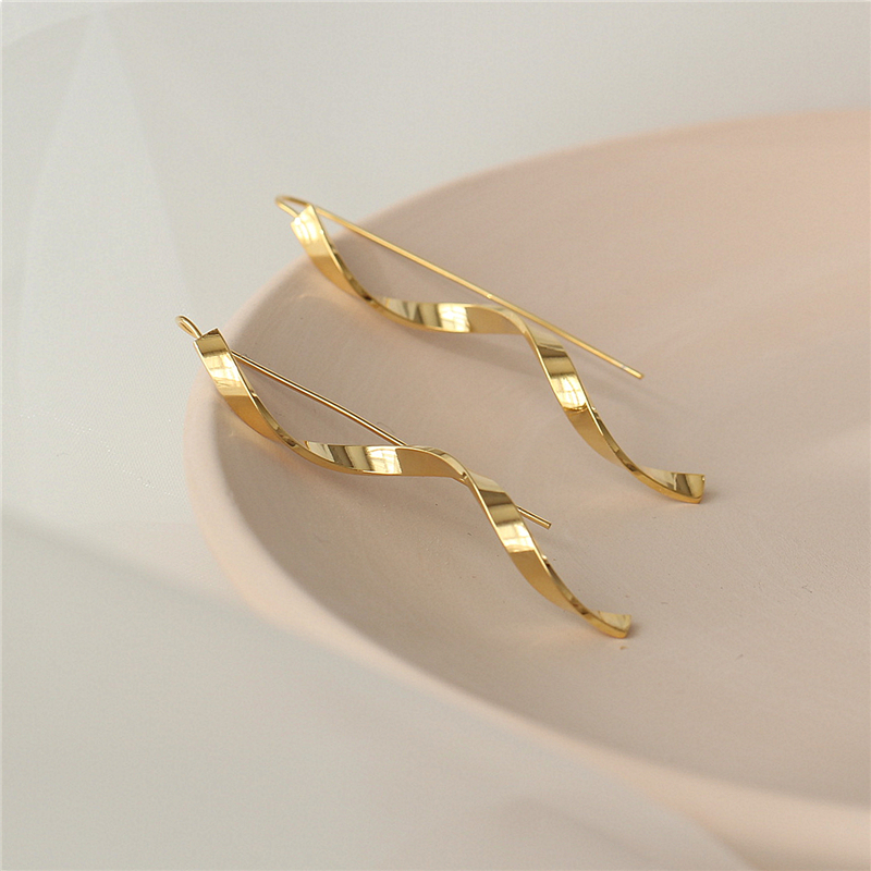 Plated real gold wave pattern earrings show face thin design sense niche earrings Femininity Korean personality cold wind earrings