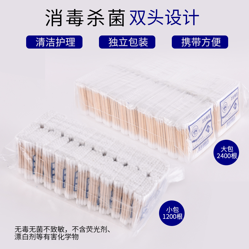 Small bag of double-ended cotton swabs (24 small bags of 1200) Large package of double-ended cotton swabs (24 small bags of 2400)