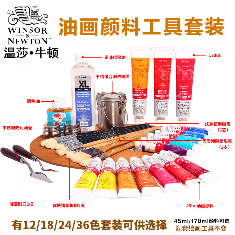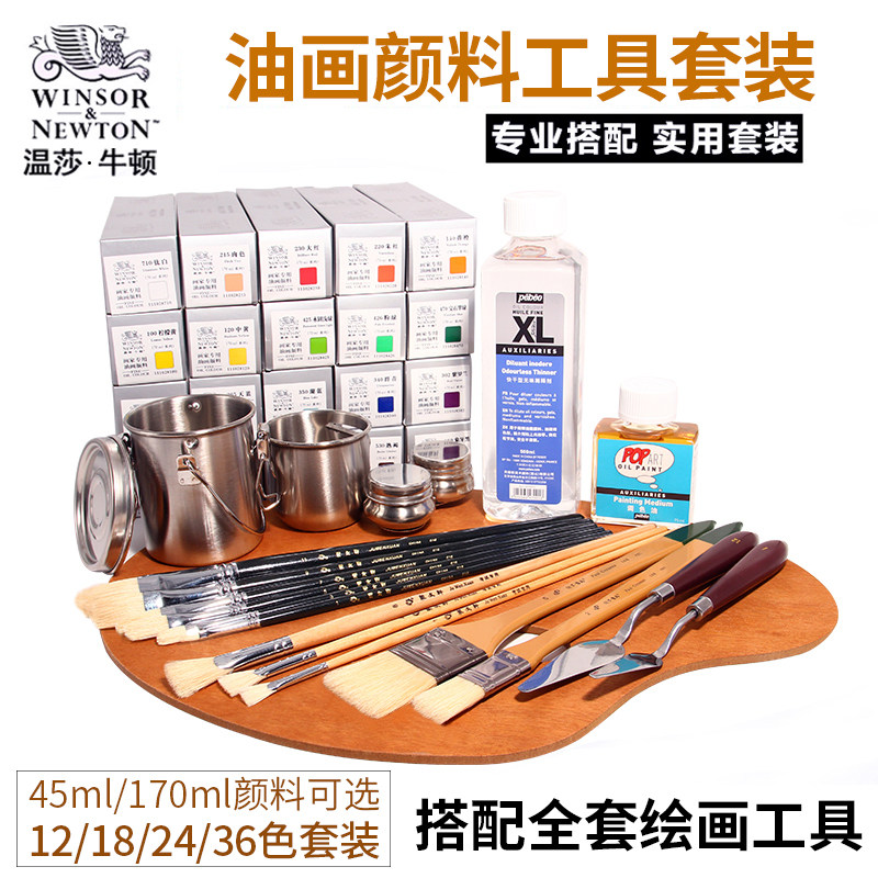 Wensor Newton Oil Painting Tool Set Windsor Newton Oil Paint 45ml 170ml Single White Gray Oil Painting Package Beginner Sketch Oil Painting Material 24 Colors