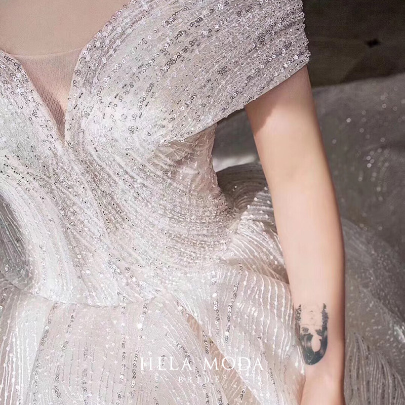 Hera custom 2021 new one-shoulder Palace style French bride big tailed wedding dress luxury little woman