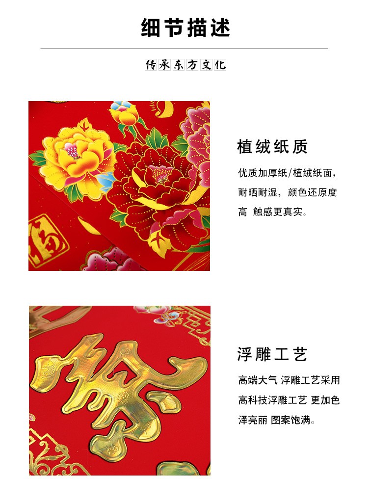 High-end Spring Festival gate to the suede relief peony bronzing new residence for the house moving plant business to 2 2 m