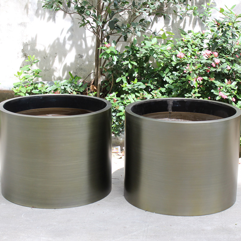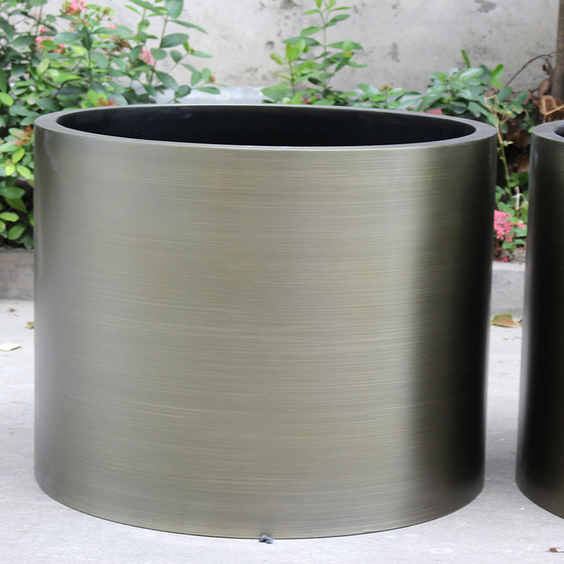 Cylinder, cylinder, stainless steel flowerpot, bronze, round flowerpot, metal office flower barrel, specialty store