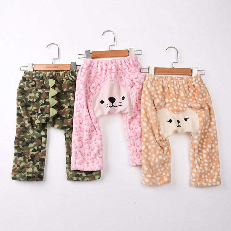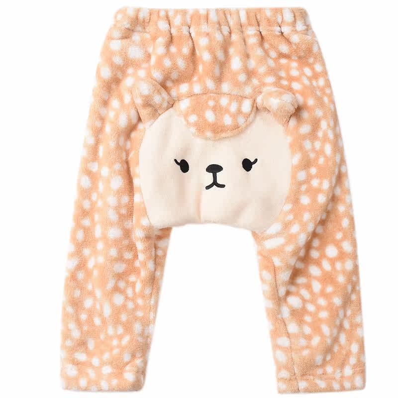 Winter Baby Coral Suede Long Pants Spring Autumn Baby Suede Big PP Pants Keep Warm No Static Pants Cartoon Cute