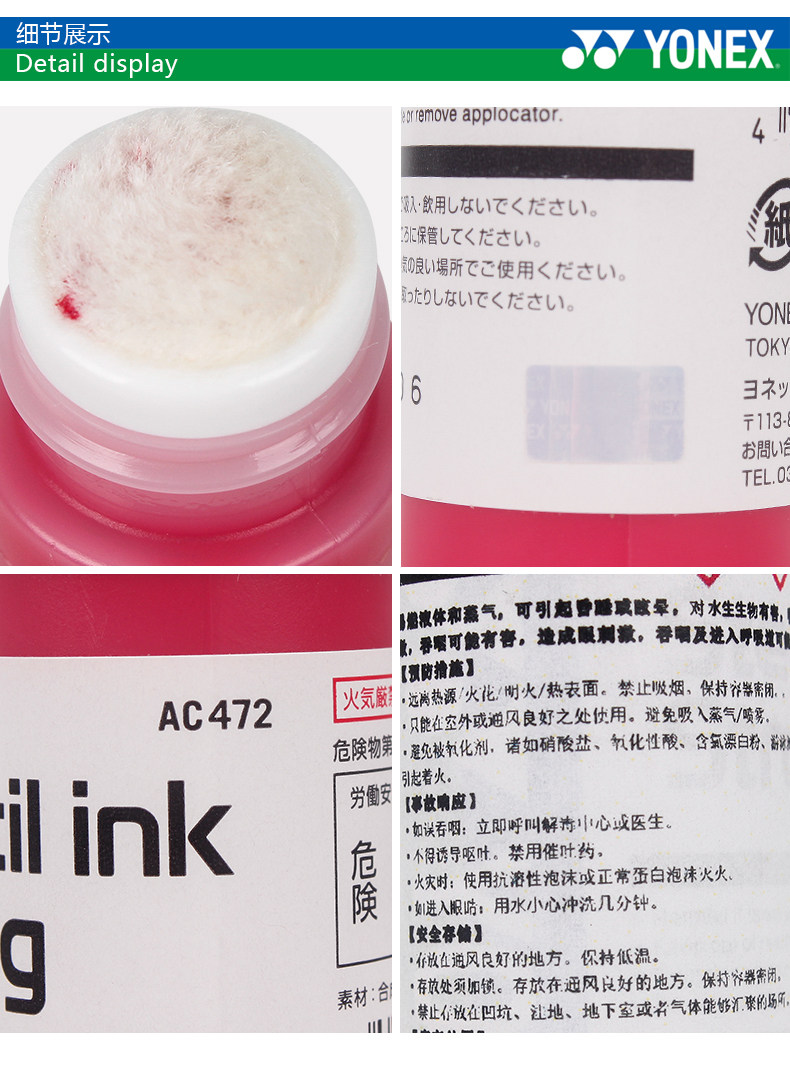 New YONEX yy badminton AC414 AC472 racket marking stroke LOGO trademark ink