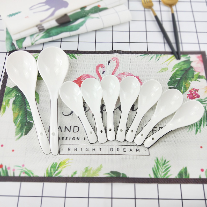 Small spoon home soup spoon ceramic drink soup with adult spice spoon creative porcelain spoon spoon white Jingdezhen cute scoop