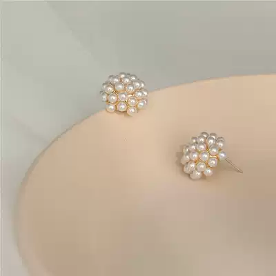 925 Silver Needle Pearl Bud Ear Needle Joker Super Immortal Earrings Female Temperament Korean Personality Simple Cold Wind Earrings