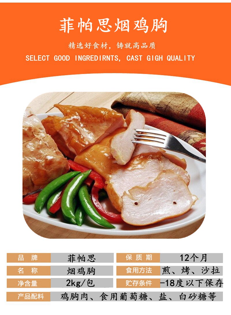 Fepas smoked chicken breast 2KG Western food commercial smoked chicken breast fitness light meal low-fat light chicken breast salad