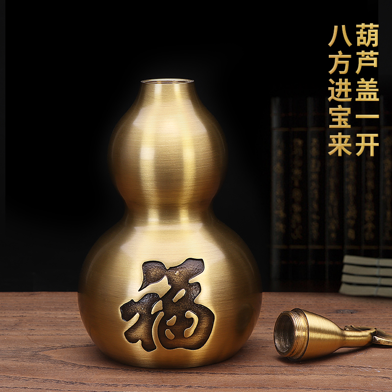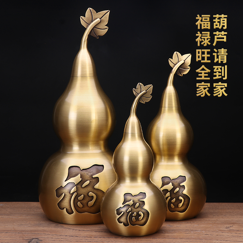Pure copper gourd feng shui decoration Lucky town house open cover hollow evil gossip office living room entrance decoration