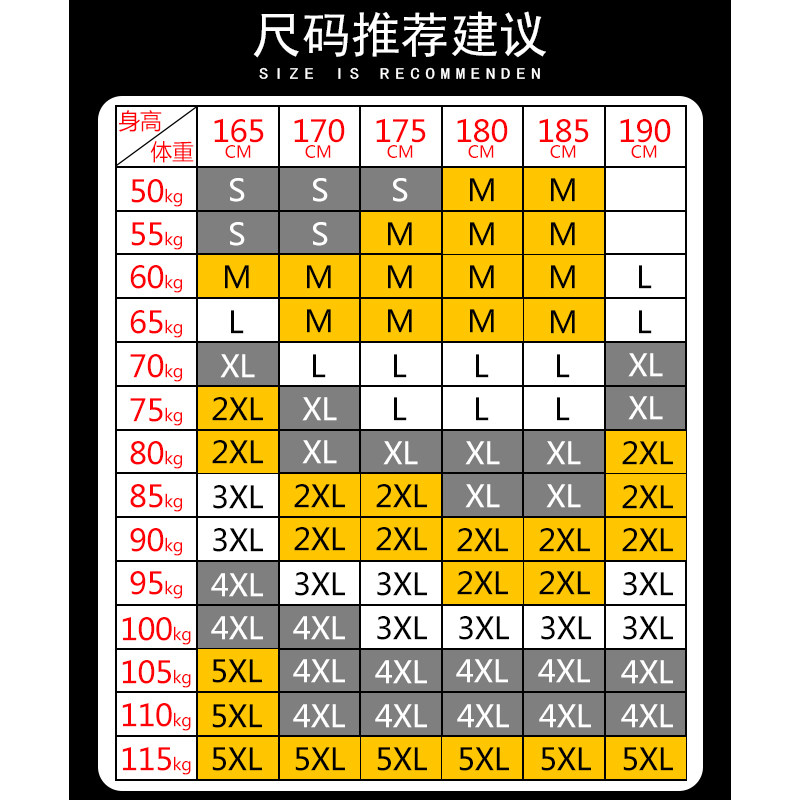 165 85 S 170 90 M 175 95 L 180 100 XL 185 105 XXL 190 110 XX