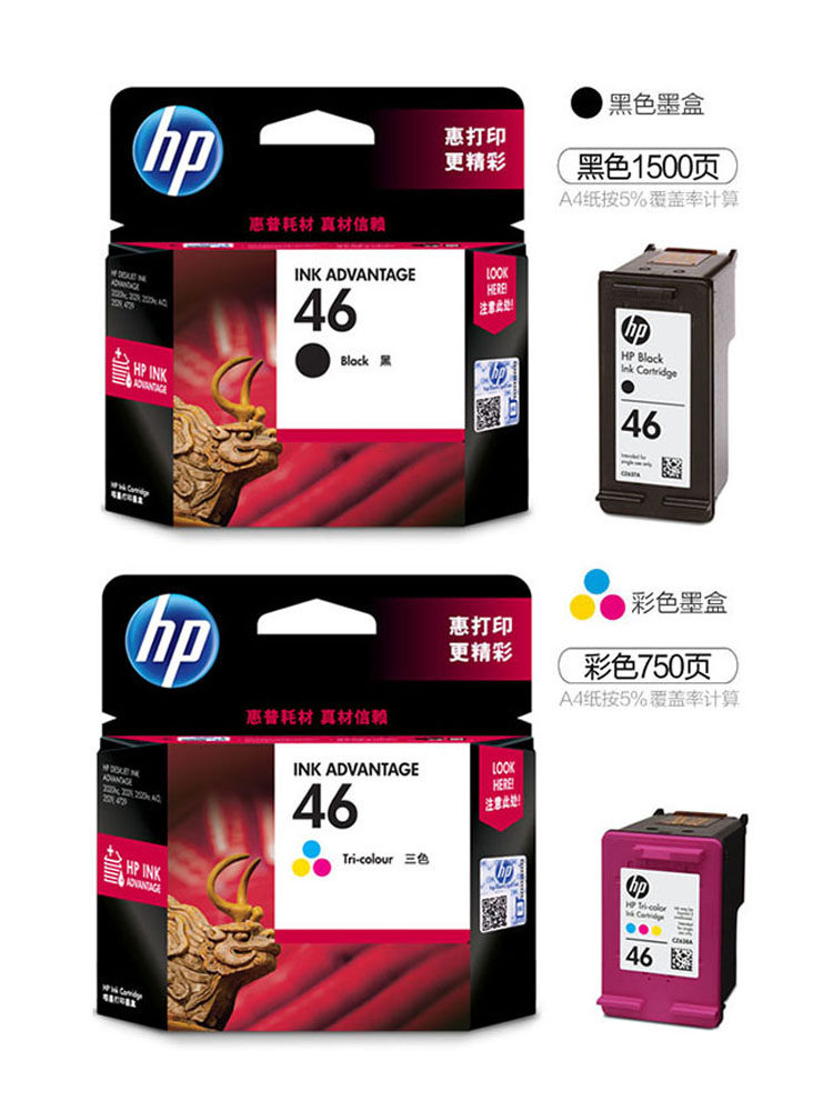 46 black ink cartridges CZ637A 1500 pages 46 color ink cartridges CZ638A 750 pages 46 black color ink cartridges set