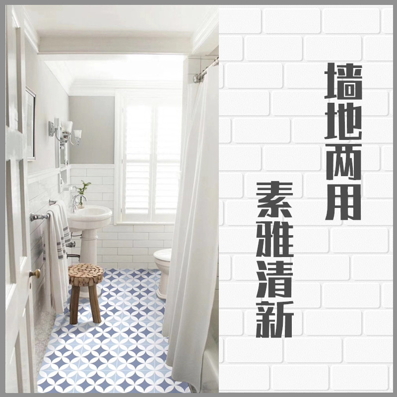 Small Fresh Blue Floral Brick Make-up Room Toilet Floor Tiles Kitchen Wall Macaron Parquet Tile Art Background Wall