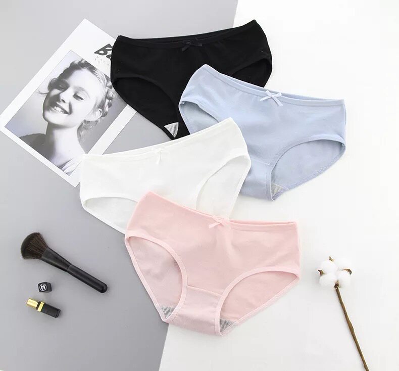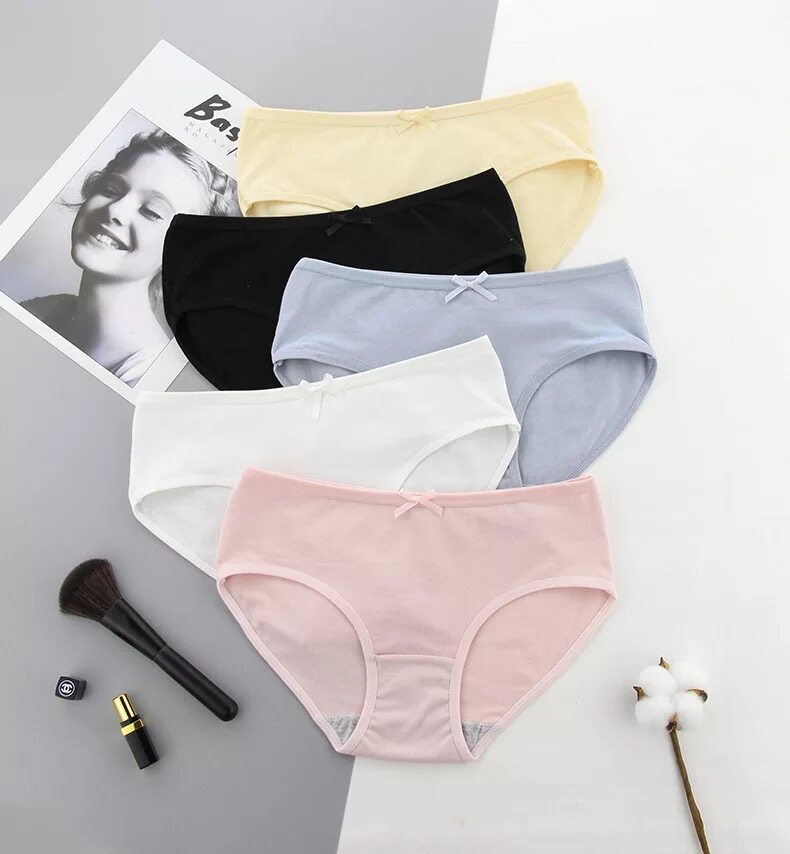 5pcs Solid Color Cotton Panties Ladies Mid Waist Plus Size Bow Simple Brief Briefs Student Shorts
