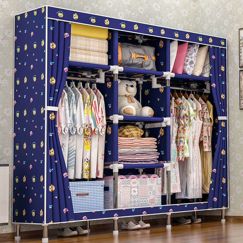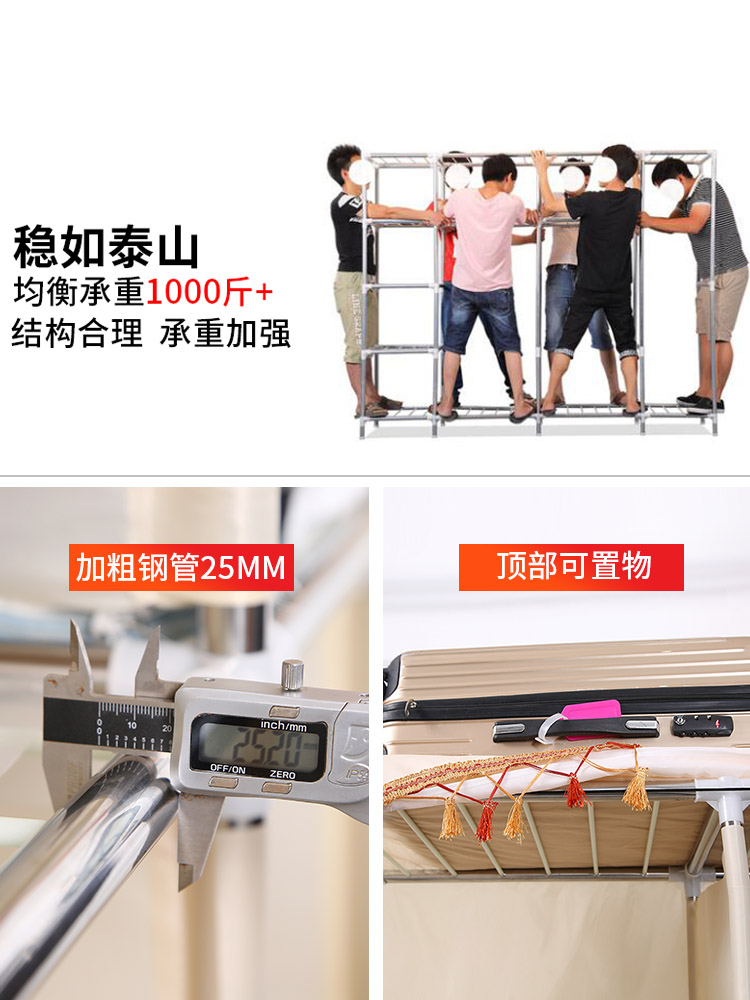 Simple wardrobe Household bedroom cloth wardrobe Coarsely reinforced rental housing with modern simple steel pipe storage hanging cabinet