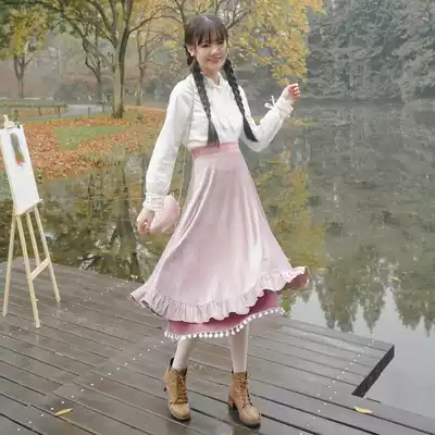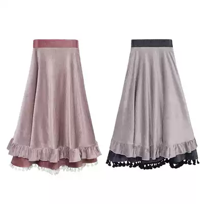 Chuan Dai: double clear skirt original design retro solid color velvet medium and long version skirt women's autumn and winter