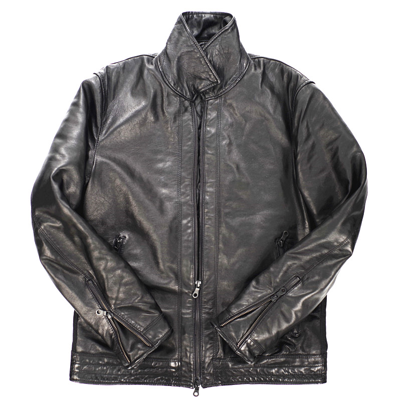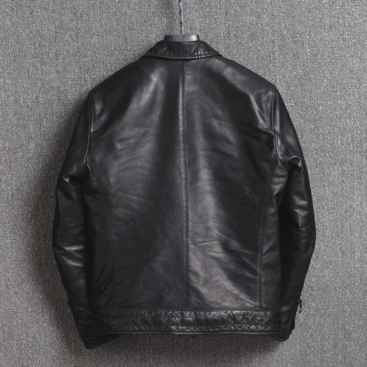 New products Japanese men's clothing minimal water washing process water dyed head layer sheep skin tip jacket thin cotton fur coat