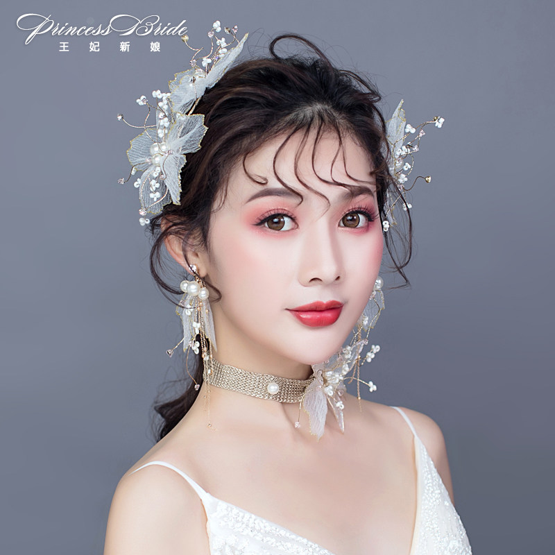 Bridal Headwear Super Senssen Ensemble Sweet silk Spun Flowers Hair Stirrup Korean wedding white yarn dress Ornament Mosaic