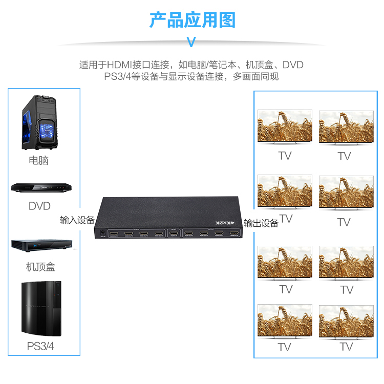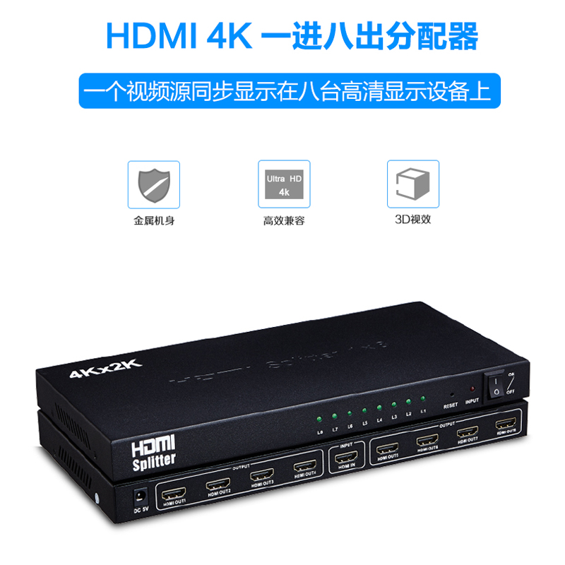 New 4K HD HDMI dispenser 1 in 8 out of eight out hdmi extension wire branch 3D TV selling