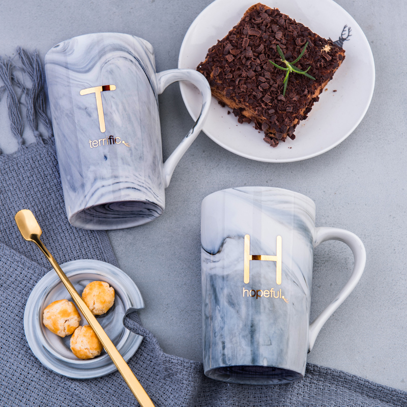 Creative Nordic ceramic mug with lid spoon personality trend mug coffee cup male and female domestic water cup couple cup