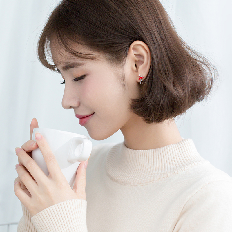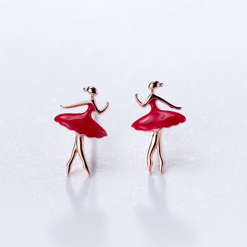 Love Rocky s925 silver Korean version of small fresh red dress ballerina earrings temperament cute little girl ear jewelry