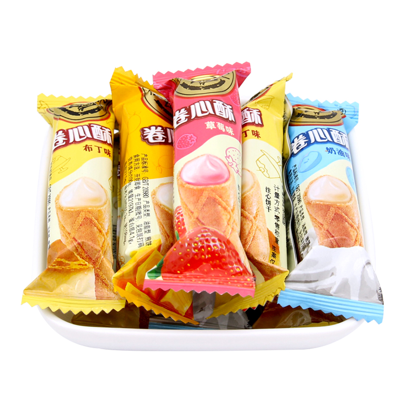 Xu Fukee Volume Heart Crisp Sandwich Egg Roll 500g About 60 Wedding Celebration candy Fruit Pastry Biscuits Snack Bulk