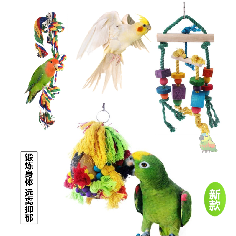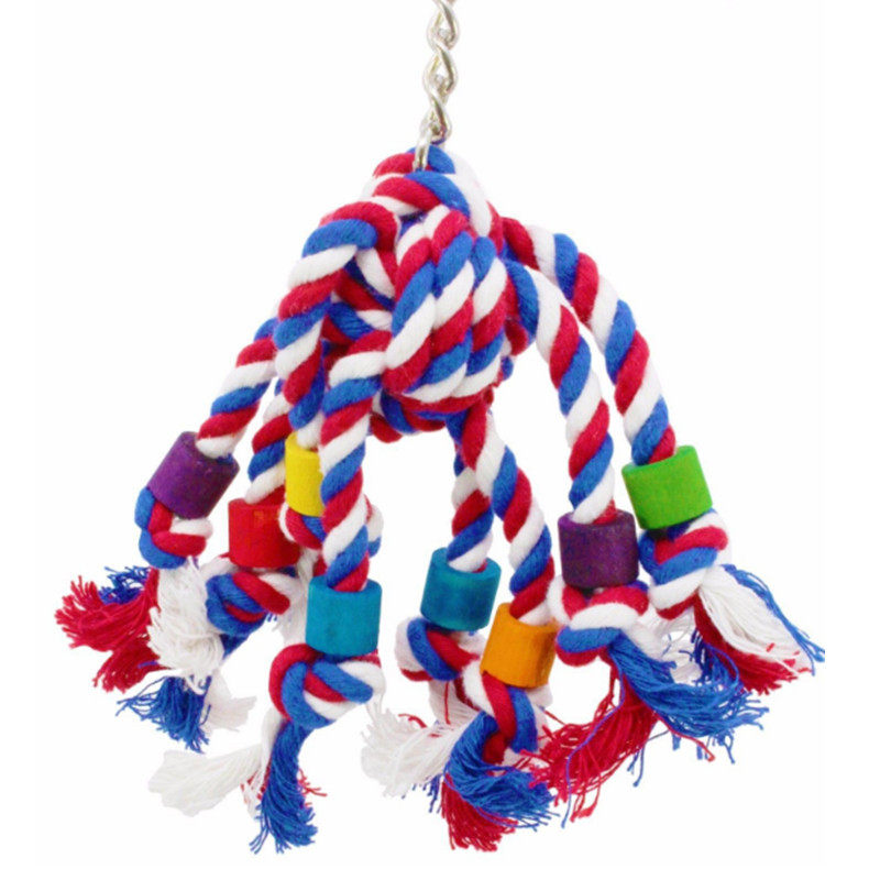Parrot toy supplies cotton rope to nibble on the strings