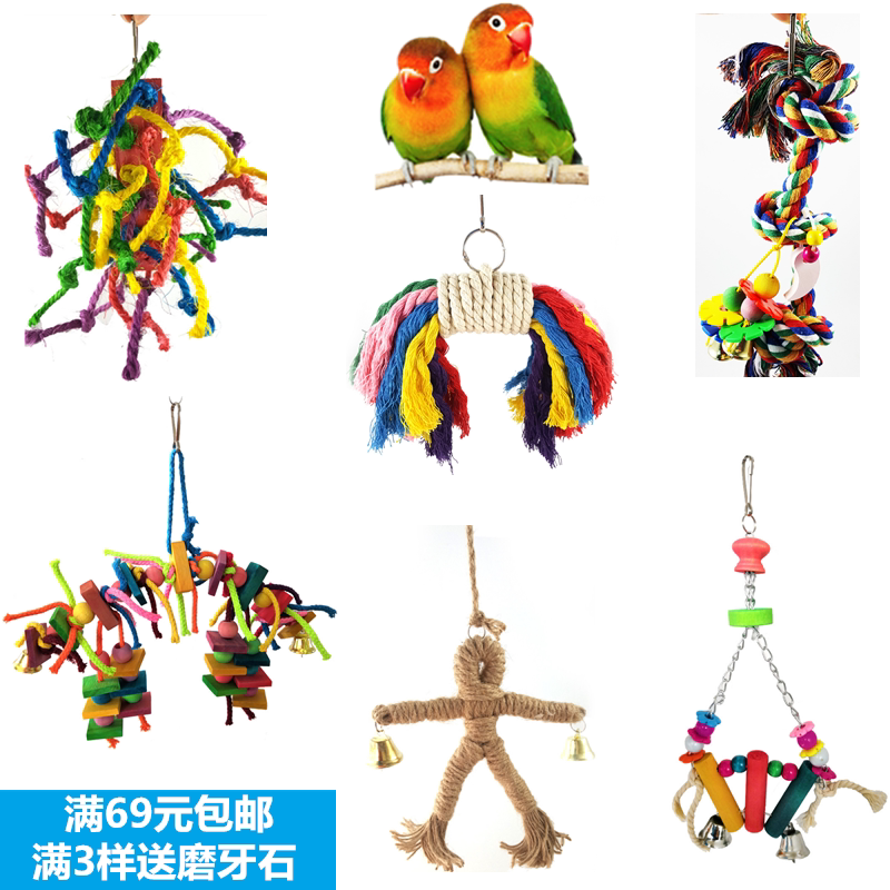 Parrot Toys Nibble Wood Cotton Rope Grinding Tooth String Pet Bird Station Rack Grinding Mouth Climbing Bird Cage Pendant Supplies Utensil