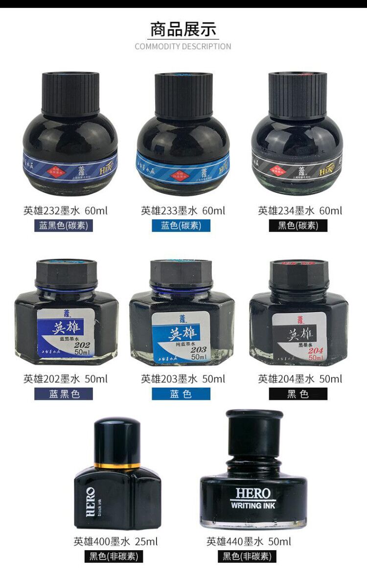 Hero HERO pen ink pen Non-carbon dye type unblocked pen male girl beginners children positive posture with suit elementary school students with 204 pure blue black blue black ink
