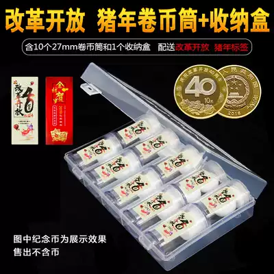 40th anniversary of reform and opening up commemorative coin square year pig year coin whole roll protection tube collection box 27mm coin roll coin cylinder