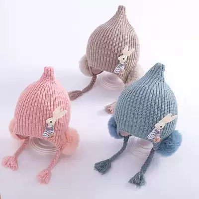 Children's autumn and winter Korean baby cute braid ear protection baby hat girl warm wool hat foreign pie tide