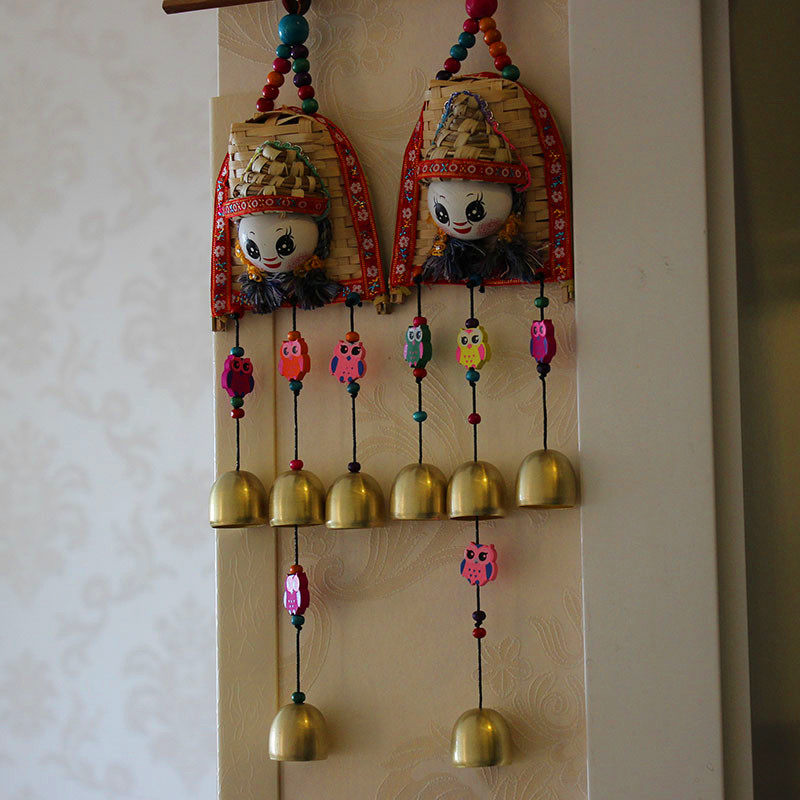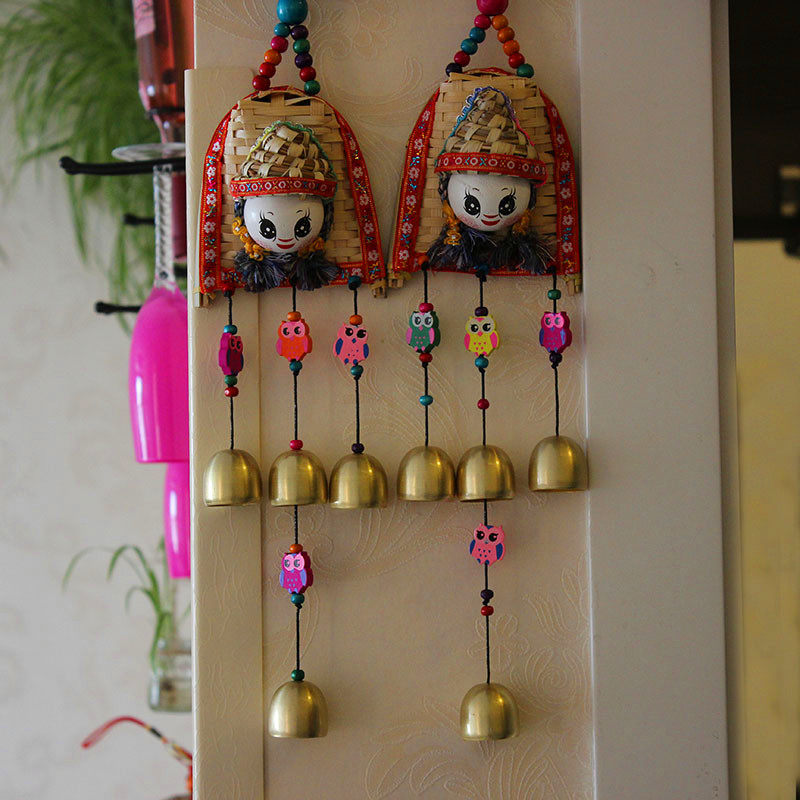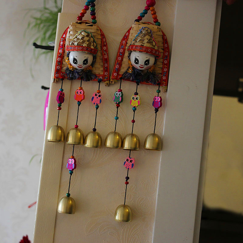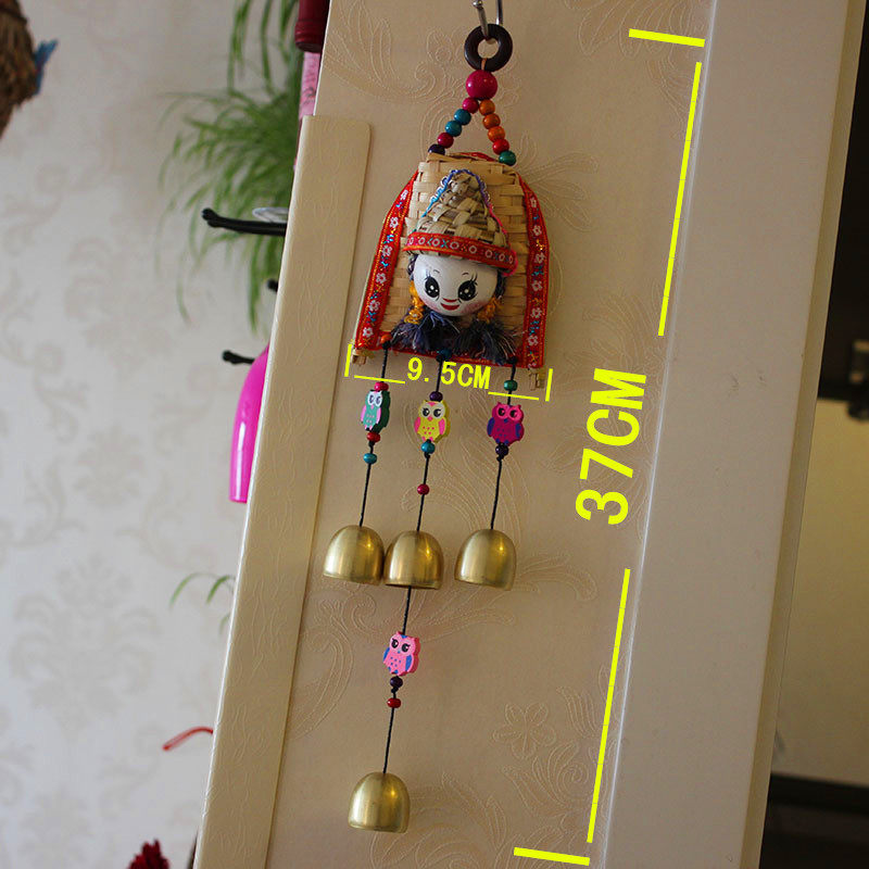 Yunnan Ethnic Wind Handmade Bamboo Weaving Wind Chime Sunny Day Doll Hanging Bell Pieces Creative Travel Small Gift Car Interior Accessories