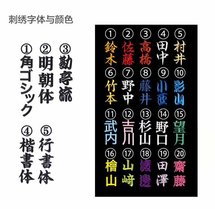White Yellow Orange Red green Blue Purple Dark brown (Please note the embroidery font color label number) (Please note the length of the belt) (Black belt embroidery method¥120 if necessary, please note)