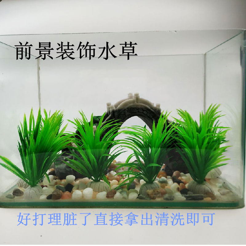 Green small water grass fish tank bottom decorated with water grass water ethnic group view foreground water grass turtle cylinder building simulation water grass-Taobao