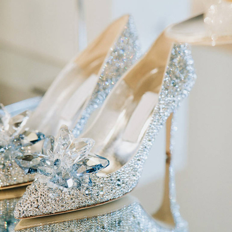 2022 Spring New High Heels Shoes Fine Heel Pointed Shoes Water Crystal Shoes Wedding Shoes Bridal Shoes Dinner Water Drill Single Shoes Female Princess