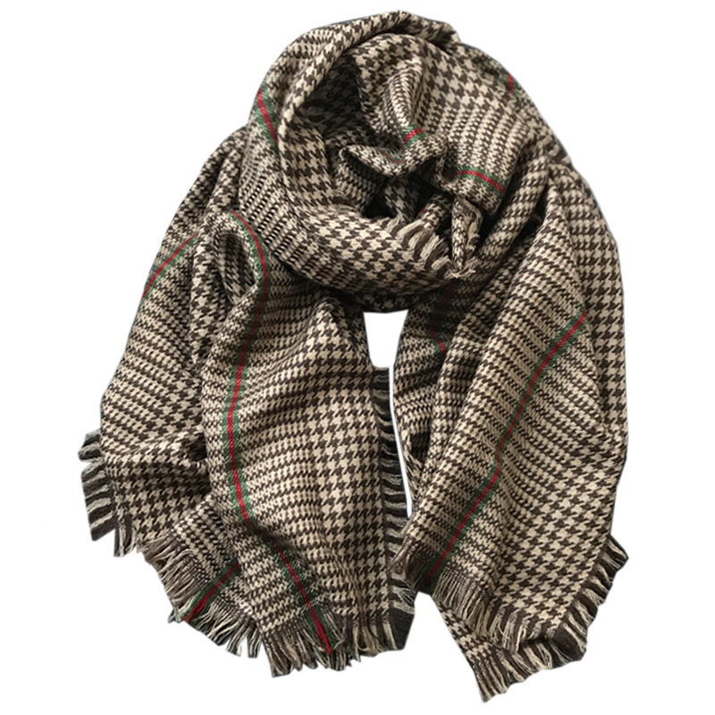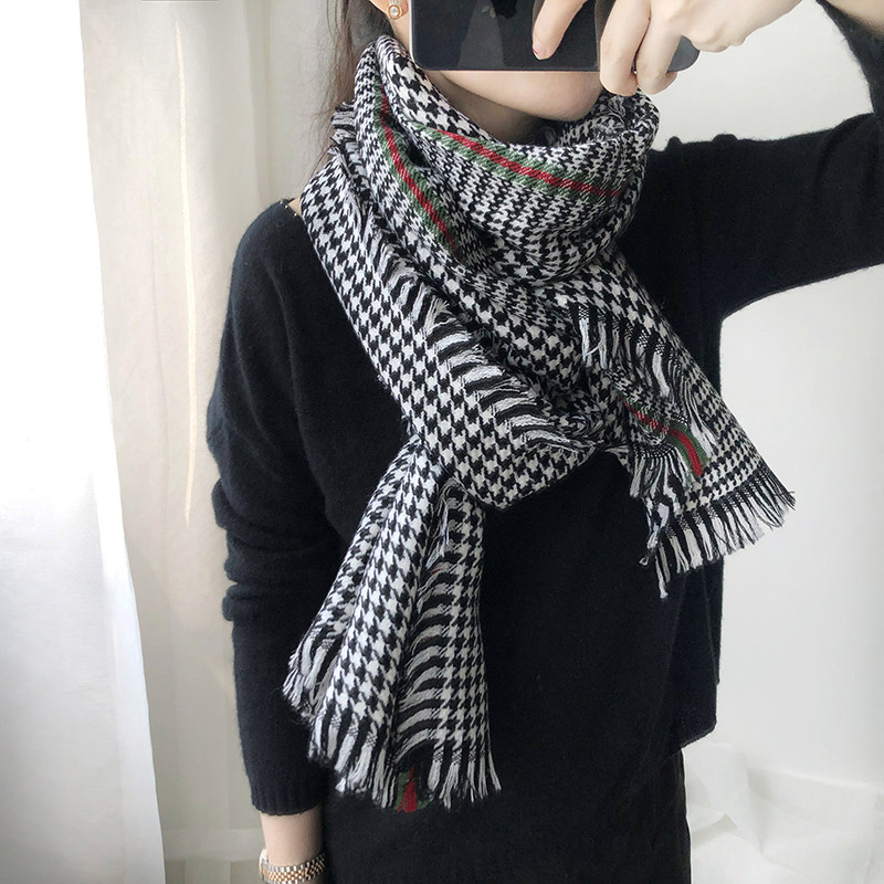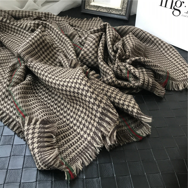 100% pure wool scarf female winter houndstooth plaid tassel thickened Joker shawl thick wool scarf spring and autumn
