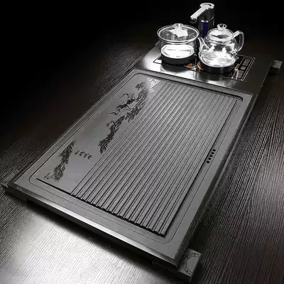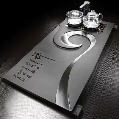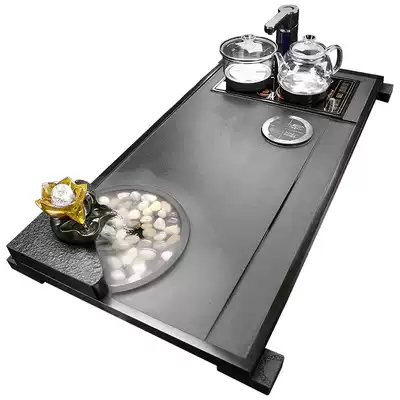 Whole natural black gold stone tea tray Household Kung Fu tea tray Large automatic one-piece Japanese stone tea table